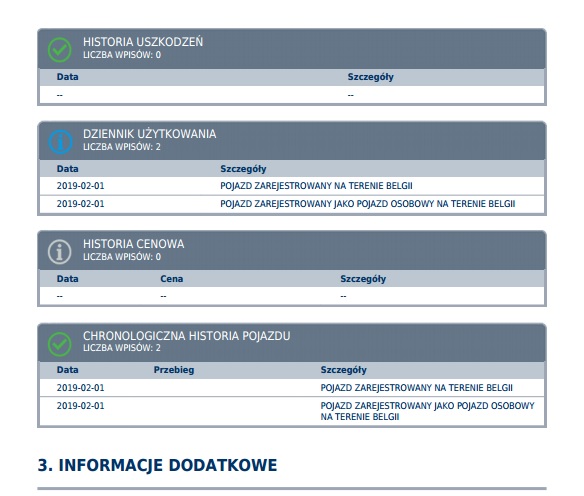 Za świeże auto na rozkodowanie dostępnymi dekoderami, a tylko raport dla Belgii może potwierdzić status "powypadkowy".