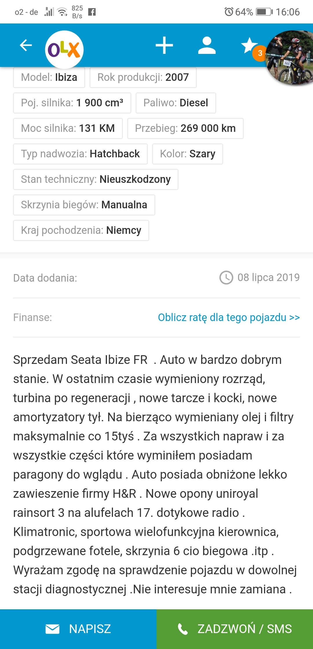 Oraz link do ogłoszenia m.olx.pl/oferta/seat-ibiza-fr-1-9-tdi-13...jolx%2Fodpowiedzi%2F