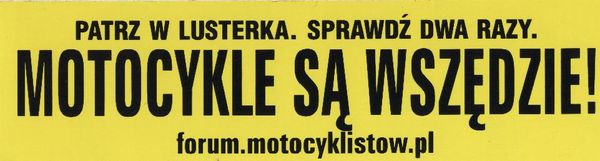 , sorki ale osobiście nie dołożę ani jednego euro cenciora na tego typu propagandę, patrząc co 80% motocyklistów wyprawia na naszych drogach .Nigdy im nie utrudniam życia na polskich krętych "uklepankach " , ale krew człowieka zalewa, jak widzi z jakimi prędkościami i w jakich pozycjach wziętych z Kamasutry, zapindalają po aglomeracjach !!!!!!!!!!!!!. I tu są sobie sami winni ,w przynajmniej kolejnych 80%