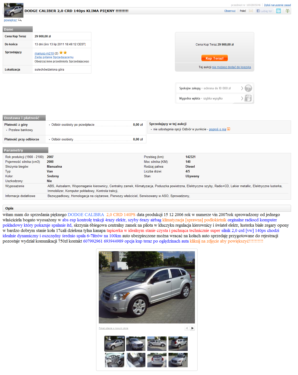 TEMAT: [UWAGA] DODGE CALIBER 2,0 CRD 140ps KLIMa 1B3HBC8A97D130830 PIĘKNY - Korekta