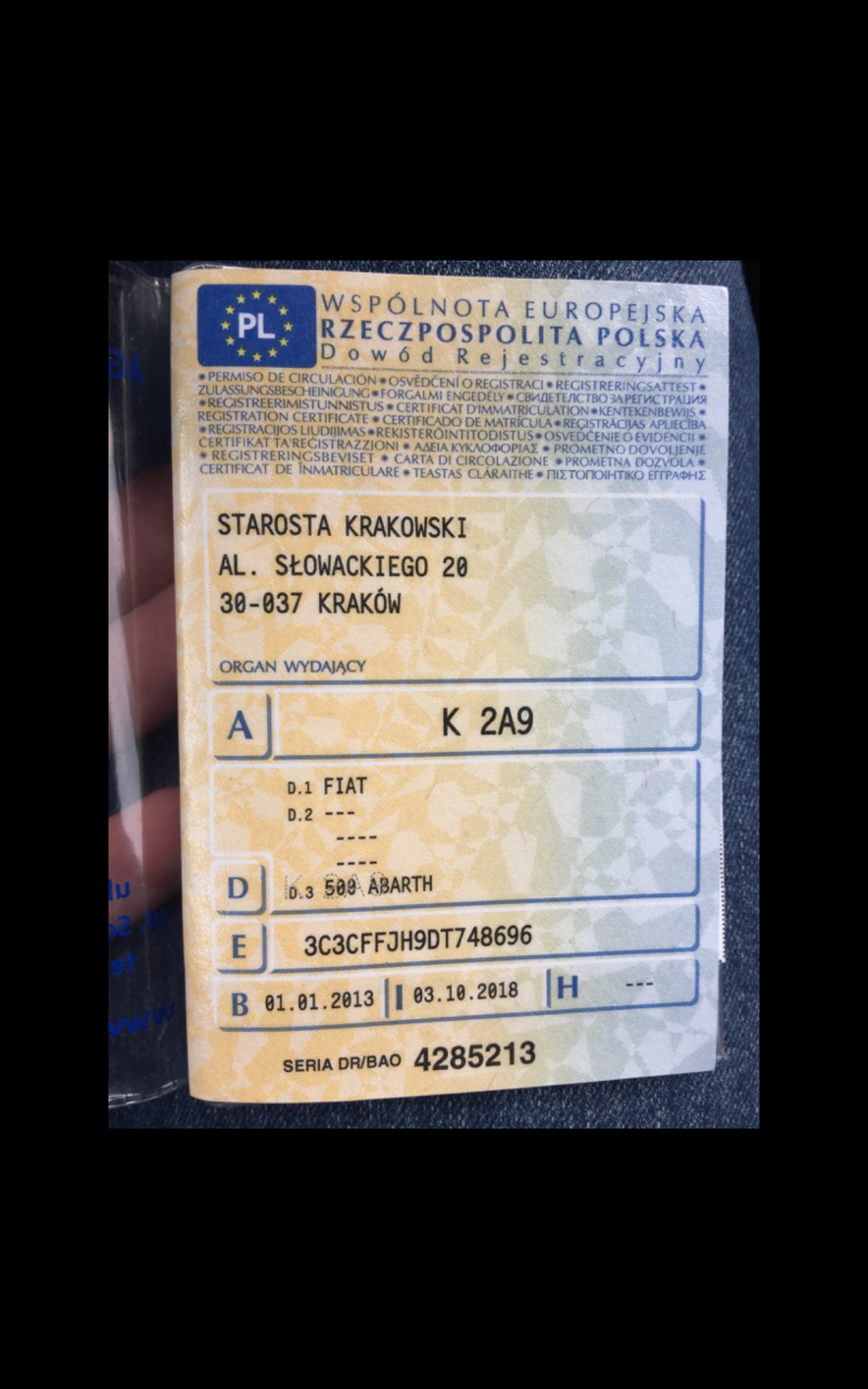 Fiat Abarth 500 VIN : 3C3CFFJH9DT748696