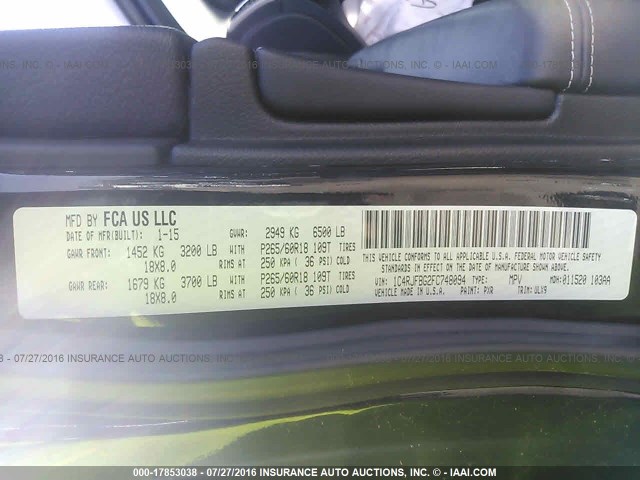1C4RJFBG2FC748094 SALVAGE-MI 20472 ACTUAL COLLISION NONE