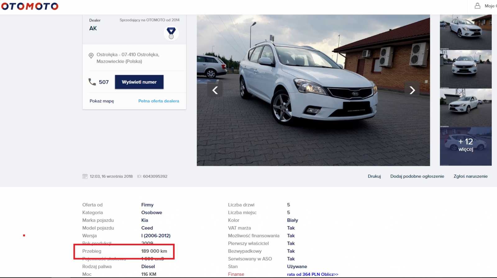 TEMAT: Kia Ceed z Ostrołęka VIN U5YHE816AAL127420