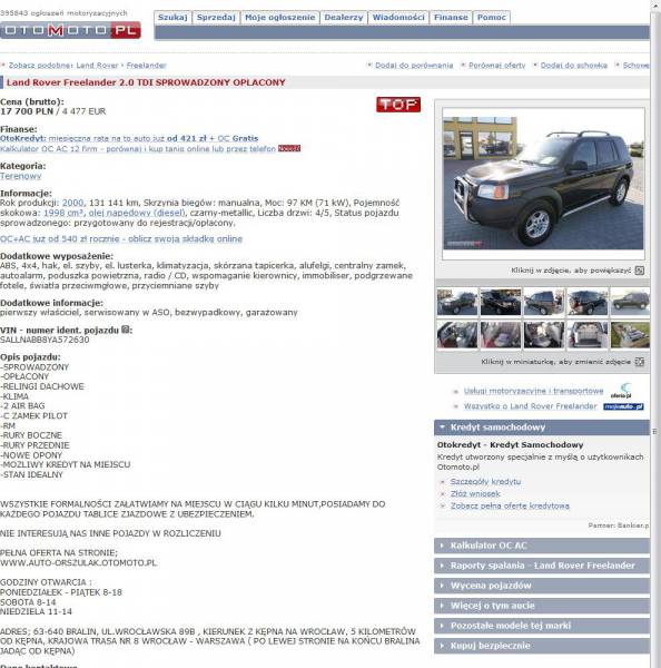 TEMAT: [uwaga] 2000 Land Rover Freelander 2.0 TDI SPROWADZONY OPLACONY SALLNABB8YA572630 + korekta licznika
