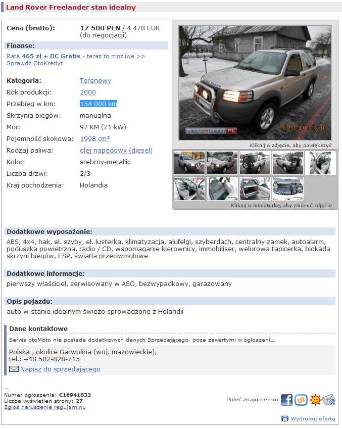 TEMAT: [UWAGA] 2000 Land Rover Freelander stan idealny KOREKTA LICZNIKA