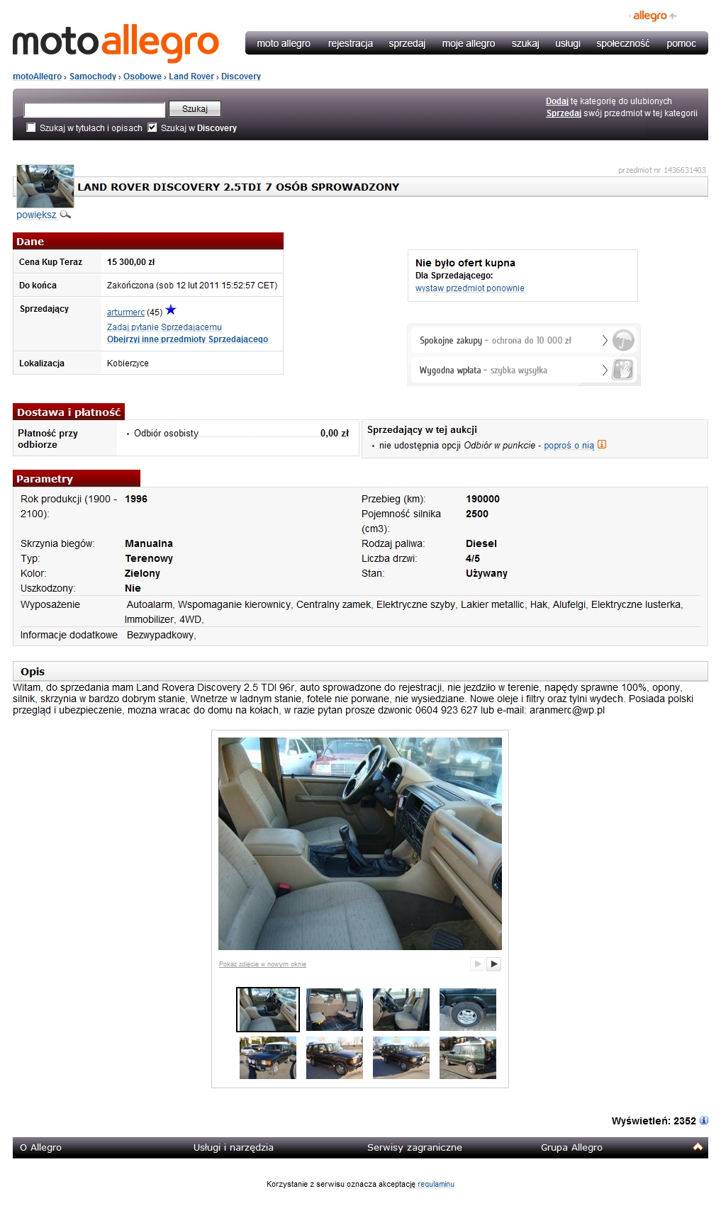 A na Alle... sprzedający tę "dyskotekę" występując pod nickiem arturmerc sprzedaje inne skądinąd fajne, ba kultowe auta. Disco ma w każdym razie też 190 000 km. Może i ma?