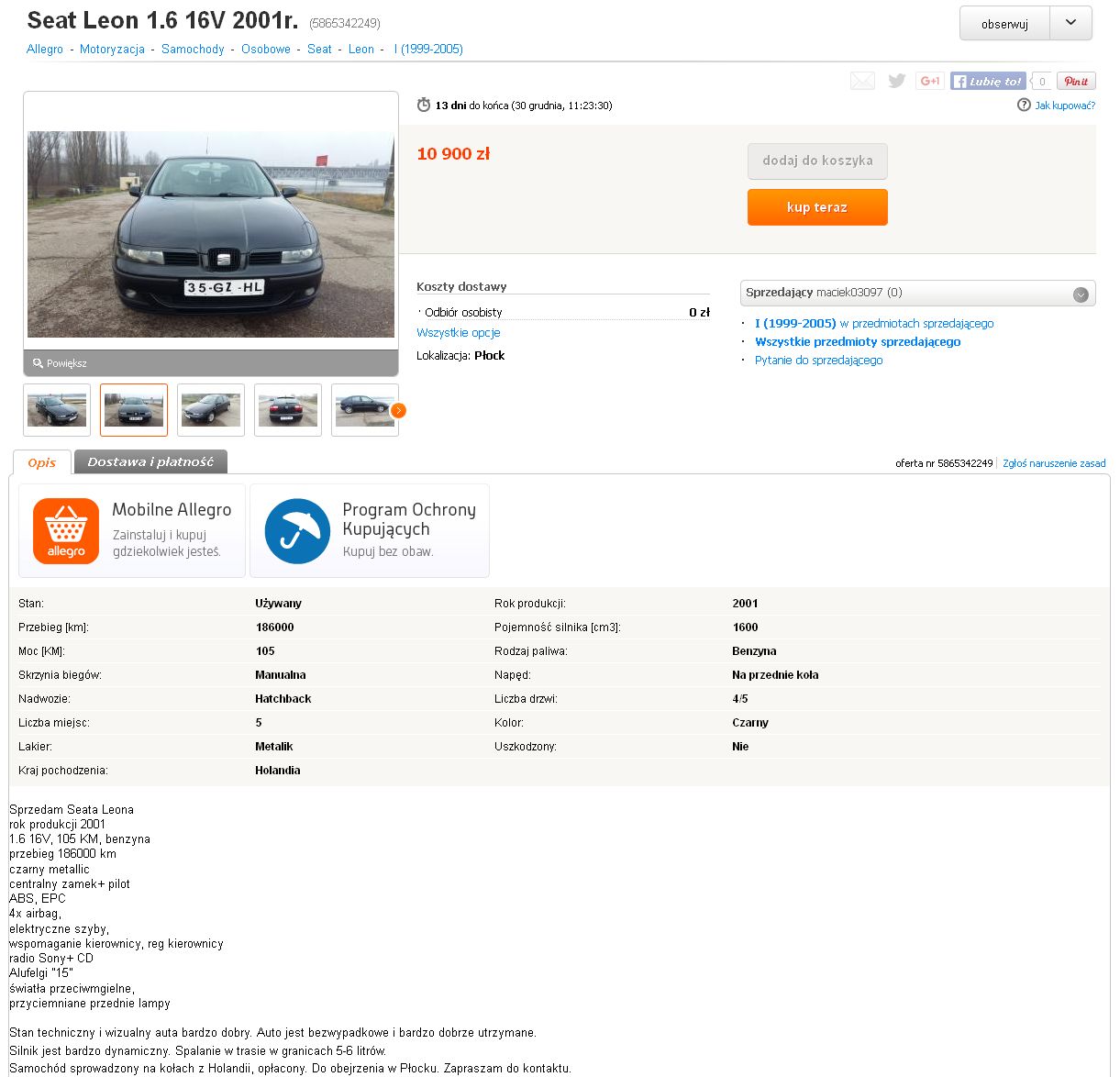 TEMAT: [UWAGA] Seat Leon 1.6 16V 2001, Holandia nr rej. 35-GZ-HL [KOREKTA]